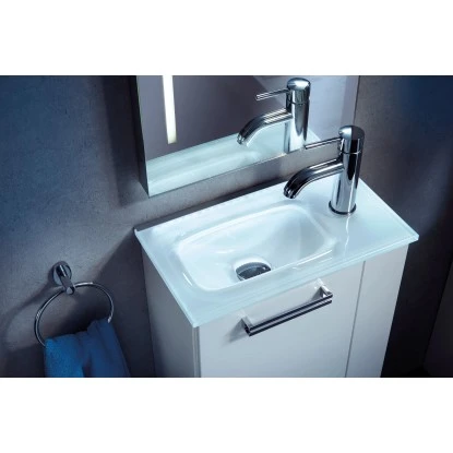 Die LED-Waschbeckenbeleuchtung Backlight für Miniglasbecken ANR 82397 (OBI Art.-Nr. 5391727) sorgt für fantastische Lichtatmosphäre am Waschplatz.