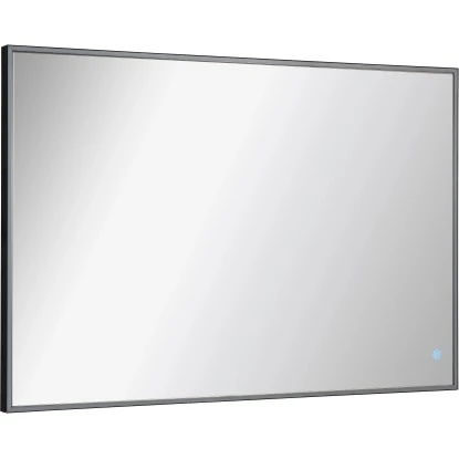 Der stilvolle Wandspiegel im eckigen Design ist die ideale Ergänzung zur Badmöbelserie New York. Mit einem Rahmen aus schwarz matt lackiertem Aluminium und einer umlaufenden LED-Beleuchtung ist er ein trendiger Blickfang, der auch funktionell zu überzeugen weiß. Über einen praktischen Sensorschalter können Sie das Licht schalten und die Helligkeit dimmen. Die Maße des Spiegels betragen (B x H x T) 100 cm x 68 cm x 3,5 cm.