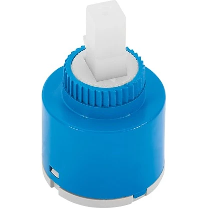 Die Keramikkartusche eignet sich zur Regelung von Durchflussmenge und Temperatur. Sie wird als Ersatzteil für Einhebelarmaturen verwendet und ist einsetzbar für die Serie Delaro. Als Außenmaterial dient Kunststoff, während die Dichtscheiben aus Keramik bestehen.