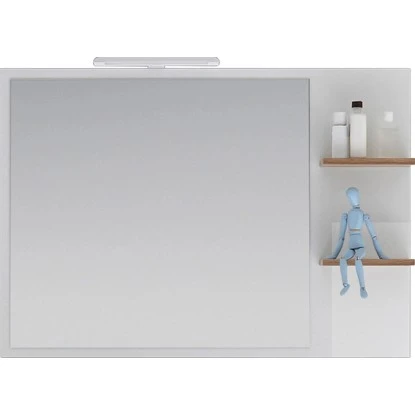 Der Pelipal Bad-Spiegel ergänzt stilsicher und praktisch Ihr Badezimmer. Der Bad-Spiegel Quickset 923 ist in modernem, skandinavischem Design gestaltet. Der weiß glänzende Rahmen des Wand-Spiegels wird mit einem Holzelement kombiniert. Die praktische Ablage im nachgebildeten Eiche-Look sorgt für einen natürlichen Touch im Badezimmer. Die Ablage eignet sich ideal für wichtige Badutensilien oder schicke Accessoires, die Sie immer griffbereit und in Sichtweite haben wollen. Der Spiegel kann optional mit einer Leuchte ausgestattet werden (nicht im Lieferumfang enthalten!), mit der er immer perfekt ausgeleuchtet ist. Der Bad-Spiegel ist Teil der Quickset 923 Serie von Pelipal. Er harmoniert optisch ideal mit den anderen Schränken und Möbeln der Serie.