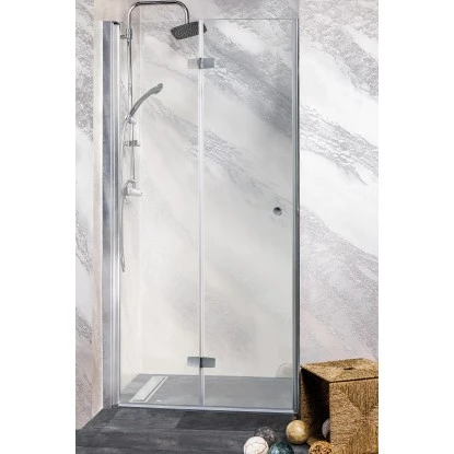 Die Sanotechnik Falttür Duet mit linksseitigem Anschlag eignet sich ideal für Eckduschen und kann mit dem passenden Zubehör auch für Nischenduschen verwendet werden. Besonders kleine Badezimmer profitieren von der platzeffizienten Bauweise, da die Tür nach innen öffnet.