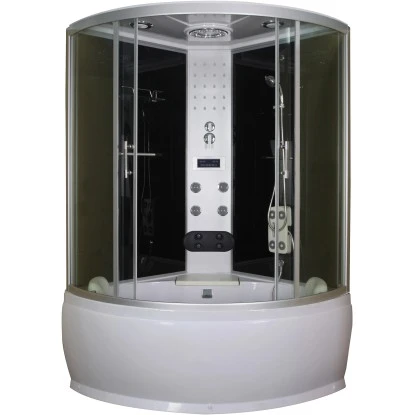 Die luxuriöse Sanotechnik Komplettduschkabine Cuba bietet Bade- und Duscherlebnis in einem und ist ein echtes Highlight in Ihrem Badezimmer. Sie überzeugt zudem durch die vielfältige und besonders komfortable Ausstattung. Durch den integrierten Umsteller können Sie zwischen Brausen und Massagedüsen wählen. Für einen tollen Effekt sorgen zudem die im Paneel integrierte LED-Beleuchtung und die Deckenbeleuchtung mit 7 Farben. Noch mehr Komfort bieten das elektronisches Bedienelement mit integriertem Radio sowie der integrierte Lautsprecher und Ventilator.