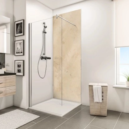Trotz ihrer edlen Beschaffenheit erweist sich die Duschrückwand zudem als überaus robust und unempfindlich gegenüber Kratzern, Sonnenlicht und Hitze bis zu 80°C.