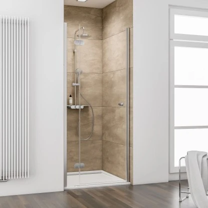Der durchgehende Magnetverschluss der Duschkabine garantiert ein perfektes Abdichten der Tür. Der Anschlag der Tür ist von außen gesehen links. Der verdeckte Heb-Senk-Mechanismus der nach außen öffnenden Tür garantiert eine erhöhte Dichtigkeit und ein zuverlässiges Schließverhalten. Durch die vormontierten innen bündigen Halbkreis-Scharniere ist eine einfache Pflege und eine einfache Montage der Dusche gegeben. Diese liegen mit der Glasfläche bündig auf. Dadurch können Wassertropfen einfach entfernt werden.