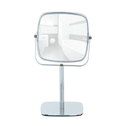 Der Wenko Kosmetik-Standspiegel Kare bietet neben der 100 % Spiegelfläche eine 5-fach Vergrößerung für den kosmetischen Einsatz. Die Spiegelfläche mit einem Durchmesser von 15 cm lässt sich je nach Bedarf neigen und umklappen.
