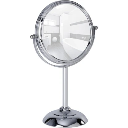 Erleichtert wird die Anwendung durch die hohe Standfestigkeit bei einer Fläche von Ø 15 cm. Gefertigt ist der schöne Spiegel aus verchromtem Stahl.